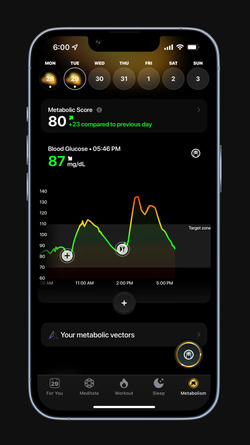 The Continuous Metabolic Tracker - provides real time personal glucose biomarkers to effectively fuel for enhanced energy, higher cognitive performance and reduced oxidative stress.